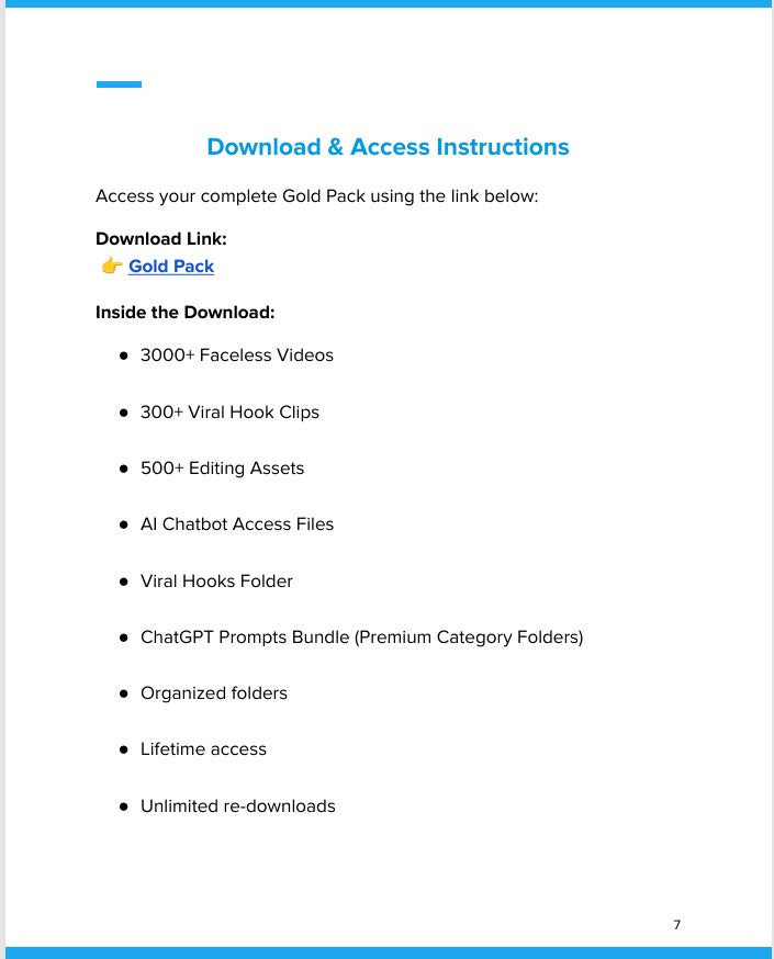 Built for creators who donβt want limits. The Gold Pack includes everything from the Premium Pack β and upgrades it into a complete, AI-powered content ecosystem.