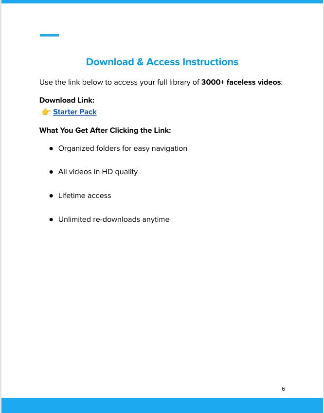 The Starter Pack gives you a massive library of high-quality faceless videos that work perfectly for Instagram Reels, YouTube Shorts, TikTok, and short-form content across any niche.